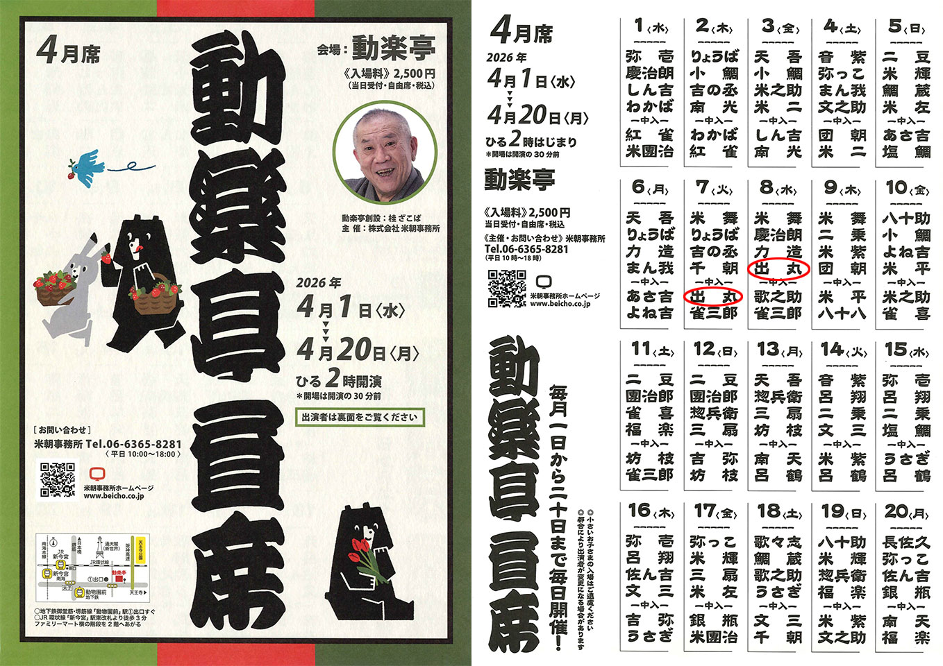 2026年4月7日(火)、8日(水)@動楽亭