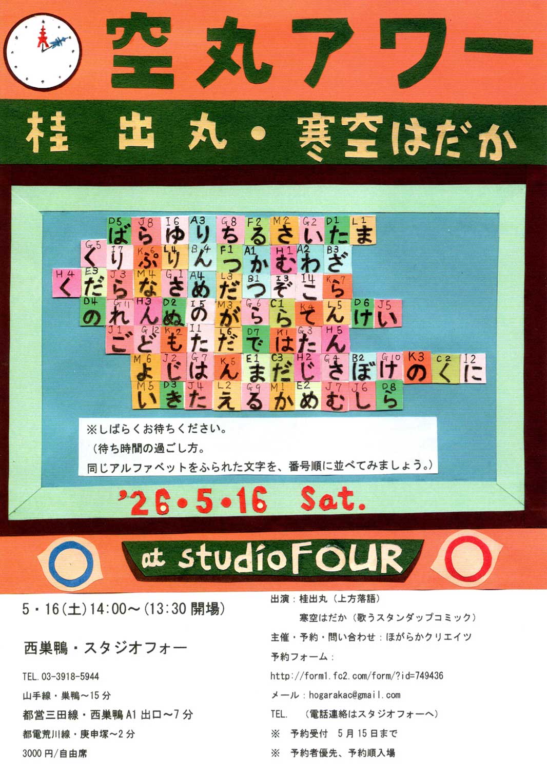 2026年5月16日(土)@西巣鴨・スタジオフォー